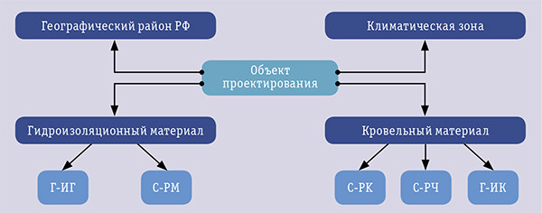 - применение гидроизоляционных материалов марок Г-ИГ, С-РМ и кровельных материалов марок С-РК, С-РЧ, Г-ИК, не соответствующих назначению и планируемым условиям эксплуатации объекта проектирования.