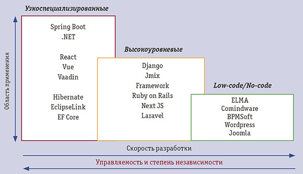 Диапазон применимости. Наибольший диапазон применимости дает комбинация специализированных низкоуровневых технологий. Например, если для клиентского приложения приема заказов требуется дизайн Pixel Perfect (строго по макету), то предопределен выбор узкоспециализированного фронтенд-фреймворка.