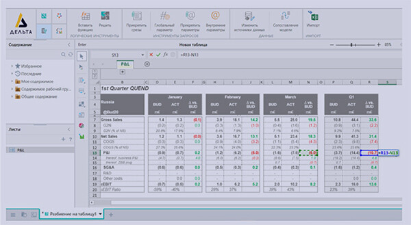 На одном графике можно отображать показатели из разных моделей, что особенно полезно для комплексного анализа. Встроенный Excel-интерфейс обеспечивает представление данных в табличном формате с поддержкой сложных вычислений (рис. 3).