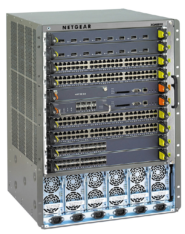 Свои новые шассийные коммутаторы серии XCM8800 компания Netgear оснастила коммутационной матрицей на 800 Гбит/с, что позволяет им обрабатывать до 570 млн пакетов в секунду. Модельный ряд серии представлен двумя типами устройств: XCM8806 на 6 слотов и XCM8810 — на 10. В каждое устройство можно устанавливать до двух управляющих модулей-супервизоров с поддержкой резервирования и распределения нагрузки. В случае отказа системы переключение между этими модулями составит менее секунды, чем обеспечивается минимальное время простоя и стабильная работа сети.