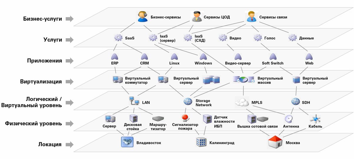 Однако, если учет ведется на отдельных участках (в серверной свой, у сетевиков свой, у энергетиков свой), возникает проблема совместимости этой информации. Смогут ли эти подразделения успешно взаимодействовать, например, в проектах развития? Вы закупаете новые серверы для ЦОДа, но оказывается, что для них не хватает электричества. Чтобы такие коллизии не возникали, необходимо понимать, какими ресурсами обладает твой смежник.