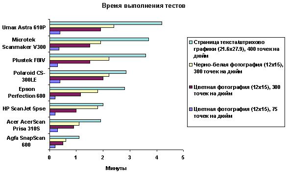 Все сканеры тестировались с использованием заводских установок (по умолчанию) в среде Windows 95 на компьютере Dell Dimension с процессором Pentium MMX-200 и ОЗУ объемом 32 Мбайт. Для каждого сканера устанавливалось ПО из комплекта его поставки. Скорость оцифровки изображений измерялась с момента начала сканирования до момента возвращения функций курсора.