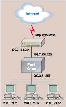 Будучи законченным интегрированным программно-аппаратным решением, Fort Knox инсталлируется менее чем за час. Причем уникальное средство SIPA (Singl IP Adress), разработанное фирмой Internet Devices, позволяет инсталлировать его без изменения существующих IP-адресов маршрутизатора, серверов, принтеров и компьютеров в вашей локальной сети.
