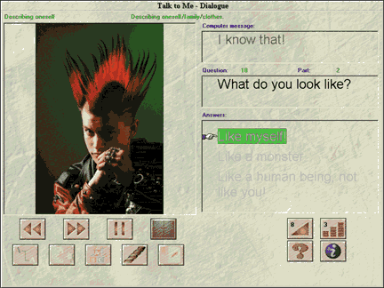 Рисунок 2. Talk to Me: если машина понимает ваш ответ, то задает следующий вопрос, если нет - вы попадаете в режим тренировки произношения