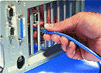Установка сетевой платы. Выключите ПК и снимите крышку корпуса. Вставьте плату в свободный разъем, предварительно убрав расположенную на задней стенке ПК металлическую заглушку. Закрепите плату винтами.