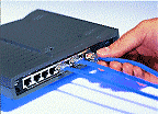 Подсоединение кабелей. Установите концентратор в доступном для подключения всех ПК месте, поблизости от розетки питания. Присоедините кабель одним концом к расположенному на задней стороне сетевой платы разъему (A), другим - к порту концентратора (Б).