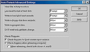 Именно благодаря автоматической защите (Auto-Protect) вашему компьютеру не страшна внезапная атака вирусов. Вспомните, как часто бывало, что дискета с мощной утилитой, которую принес ваш друг, оказывалась зараженной. А вот режим Auto-Protect такого бы не допустил. Во-первых, потому, что при любом обращении к дискете Norton AntiVirus проверяет файлы на ней. Во-вторых, любая запускаемая программа неминуемо подвергается обследованию "доктора". И как только обнаружен вирус, вы получите сообщение об этом, а выполнение программы и любые другие операции с файлами приостановятся в ожидании вашего решения.