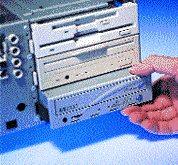 Если в вашем ПК есть свободный 5,25-дюймовый отсек, то лучше выбрать внутренний дисковод CD-RW. Имеющийся же накопитель CD-ROM можно использовать для быстрого чтения дисков независимо от модели устанавливаемого дисковода CD-RW. Ниже приведены основные действия по его подключению (для модели с EIDE-интерфейсом начинайте с п. 1, а для модели, подсоединяемой к параллельному порту, — с п. 2).