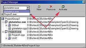 Менеджер проектов C++Builder 4 претерпел некоторые изменения. В целом он продолжает линию, начатую еще в третьей версии пакета, — работа с группами проектов вместо одиночных проектов. Но теперь в менеджере появился удобный селектор проекта в виде раскрывающегося списка (рис. 2).