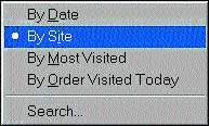 Со средствами сортировки, появившимися в IE 5, легче организовать информацию о посещенных Web-узлах. Всплывающее меню позволяет упорядочить страницы по дате, названию, частоте посещений; новый поисковый механизм ищет по заданному ключевому слову те страницы, на которых вы побывали |