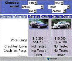 Поскольку IE 5 запоминает набор кадров, который был на экране, когда устанавливалась закладка, при повторном обращении получается абсолютно та же самая страница. Например, технические характеристики двух машин корректно выводятся в IE 5, но теряются в IE 4