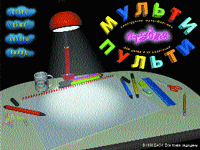 Мульти-пульти ? Конструктор мультфильмов для детей 6—12 лет (мамам и папам тоже будет интересен) ? Системные требования: Pentium-100, 16-Мбайт ОЗУ, 6Х-дисковод CD-ROM, видеосистема, поддерживающая разрешение 800Ё600 точек при отображении 65 536 цветов, звуковая плата, мышь, микрофон (желательно). Программа работает в среде Windows 9х. ? Цена: 15 у.е. ? Разработчик: BASI (г. Донецк) ? Издатель: «МедиаХауз», тел. в Москве: (095) 737-88-55, 737-00-88, www.compulink.ru/cdrom