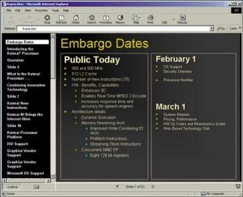 | Презентации, созданные в PowerPoint 2000, прекрасно смотрятся в Internet Explorer (вверху), но совершенно недоступны из Netscape Navigator (внизу) |