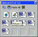 Если на вашем ПК установлен пакет Office 2000, то описанный ранее совет вам не пригодится. Но компания Microsoft в конце концов прислушалась к «мольбам» пользователей — она предложила новую функцию Collect and Paste (собрать и вставить), которая обеспечивает копирование нескольких элементов, фрагментов текста или графических изображений в буфер обмена и последующую их вставку в новый документ. Она работает так.