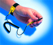 Избегайте статического напряжения. Модули памяти более чувствительны к статическому электричеству, чем все остальные компоненты ПК. Поэтому перед тем как вынуть новые модули из антистатической упаковки, наденьте антистатический браслет (см. рисунок) и подсоедините его к заземленному металлическому объекту, например к части сетевой электрической розетки. А если вы не используете такой браслет, то прежде чем дотронуться до модулей памяти или любого другого элемента внутри ПК, обязательно дотроньтесь до какого-нибудь заземленного металлического объекта (например, шасси ПК).
