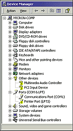 Еще более серьезным симптомом показалось нам и то, что программа начальной установки Windows 2000 зависла, когда была вставлена последняя из названных плат. Даже после того, как мы ее вытащили и завершили инсталляцию, простая установка этого устройства приводила к «зависанию» системы. Удаление же его немедленно возвращало ОС к жизни. Как выяснилось впоследствии, проблема возникла из-за конфликта между платой и конкретным мобильным ПК Micron. Windows 98 при работе на той же системе также отказывалась распознавать это устройство. И все-таки элементарный конфликт оборудования не должен был бы ставить Windows 2000 на колени.