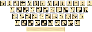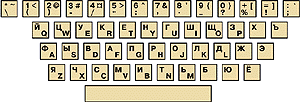 Казалось бы, все сложилось удачно. Ситуация стабилизировалась. Но ведь в России гениев хоть пруд пруди. Нашлись-таки! Начиная с 1994 г. для работы в ОС Windows стала внедряться новая раскладка кириллицы на клавиатурах ПК. Из-за постепенного перехода на эту ОС и отсутствия альтернативных драйверов она становится фактическим стандартом, тем более что появились русифицированные клавиатуры фабричного изготовления с раскладкой знаков кириллицы и под этот стандарт (рис. 4).