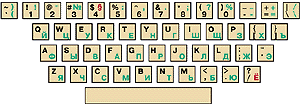 Она основана на наиболее распространенном фактическом стандарте расположения знаков кириллицы на клавиатуре ПК для работы в ОС MS DOS. Три незначительных изменения отмечены красным. Знак параграфа (?) введен вместо символа ?, у которого и названия-то нет, да и в русских текстах мне его встречать не приходилось. Буква Ё помещена на свое место в соответствии с ГОСТ 6431—90 и знак номер (№) также, тем более что он заменил прямой слэш (/), имеющийся в том же ряду на последней клавише справа.