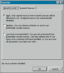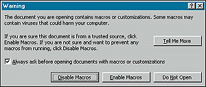 Никто не сомневается в непревзойденных возможностях инструмента Visual Basic for Applications для создания макросов в Word и других приложениях пакета Microsoft Office. Однако он имеет один очень серьезный недостаток — с макросами могут распространяться вирусы. Редакторы Word 97 и 2000 способны сохранять макросы внутри документа, а при открытии или закрытии файла автоматически запускать их. Последняя вспышка «эпидемии», вызванная вирусом Мелисса в апреле этого года (распространяется с присоединенными к сообщениям электронной почты файлами), заставила задуматься о последствиях, к которым могут привести макровирусы, а также о важности защиты от них. Вот несколько рекомендаций.