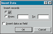 6. В появившемся диалоговом окне «Вставка данных» (Insert Data) либо сразу нажмите ОК (для импортирования всех записей), либо до этого укажите номера первой и последней записи. Редактор Word создаст точную таблицу, содержащую необходимые данные.