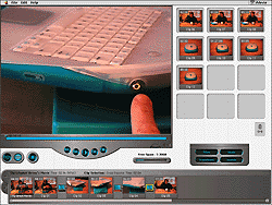 В iMovie реализован интерфейс, напоминающий среду пакета QuickTime Player 4.0 — «полка», содержащая до 12 видеосцен. Чтобы добавить фрагменты, нужно подключить iMac кабелем FireWire к цифровой видеокамере, запустить iMovie, щелкнуть на кнопке Import (Импорт), а затем — на кнопке Play (Воспроизведение). iMovie помещает первую сцену в незанятый сектор полки, распознает смены сцен — где вы начинали или заканчивали съемку — и создает новую сцену после каждой остановки.