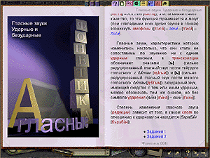 Главная «изюминка» учебника — развитая система гипертекста. Многочисленные ссылки отображаются разным цветом и изменяют курсор мыши в зависимости от того, куда они ведут, — к другим главам, словарю терминов, анимации, настройкам звука и т. д.