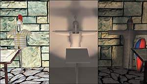 | A. Игра света и тени стараниями ATI выглядит очень правдоподобно. B, C. Пример реализации bumpmapping в исполнении MATROX | |
