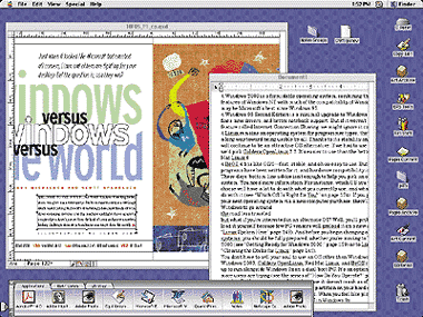 В Windows 95 сознательно скопированы многие особенности интерфейса Macintosh, в том числе рабочий стол, пусковая кнопка и мусорная корзина. Но нынешняя операционная система Macintosh — Mac OS 8.x по-прежнему проще в работе, чем Windows. Например, когда вы вставляете дискету в дисковод ПК с Windows, то, чтобы получить доступ к ней, нужно последовательно пройти несколько значков, а на Macintosh при вставке дискеты в дисковод ее значок автоматически появляется на рабочем столе.