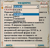 Появились два новшества: хронология творчества поэта и тезаурус — встроенная энциклопедия, которая мгновенно выдаст справку, стоит только установить мышь на нужное слово или фамилию. Причем тезаурус можно «снести» вниз и при необходимости вызывать, не обращаясь к пиктограмме вверху экрана. Немаловажно, что в этом случае сохраняется история ваших поисков.