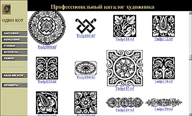 Но это дело поправимое. Число электронных каталогов изображений растет, подобно лавине. Вот и российская компания «Один кот» внесла свою лепту в расширение ассортимента, выпустив для архитекторов диски с образцами интерьеров, фасадов и декора, а для художников — с полиграфическими украшениями. Один из них, второй альбом «Профессионального каталога художника» с уголками, заставками и концовками, мы и рассмотрим.