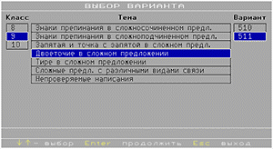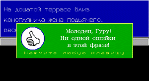 Каждый абитуриент выбирает репетитора по своим потребностям — кому-то требуется опытный преподаватель, кому-то хватает студента. Причем бывает, что первый, одетый в джинсы и свитер, выглядит как студент, а второй, в строгом костюме, — как солидный джентльмен. Это характерно и для мультимедийных репетиторов. Так, программа-тренажер по русскому языку фирмы «ГуруСофт» не отличается внешней броскостью. Нет там пространных экскурсов в историю, нет больших сводных таблиц с грамматическими правилами, видеофрагментов и анимации. Но зато есть множество упражнений, разбитых по уровню сложности на три части: для начальных, средних и старших классов. В них приведены примеры, позволяющие усвоить самые разные правила. В предложениях в зависимости от изучаемой темы либо пропущены знаки препинания или предлоги, либо в словах отсутствуют буквы. Для старшеклассников даны различные варианты заданий для повторения.