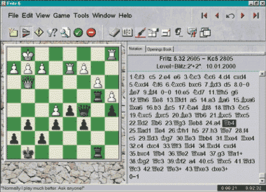 Как и все заядлые игроки, Fritz 6, проиграв, находит оправдание такому нелепому результату: то жалуется на перепады напряжения в электросети, то сообщает о случайном сбое в реализации алгоритма. Иногда программа даже льстит сопернику: «Предыдущим игроком, услышавшим от меня слово «сдаюсь», был Каспаров». А по окончании первой из приведенных выше партий Fritz поделилась предвидением: «Я знаю, что увижу эту партию в журнале». Сбылось.