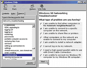 Если вы собираетесь объединить в сеть несколько настольных или блокнотных компьютеров, работающих в среде Windows 98, но не хотите прокладывать кабель, то имеется неплохая альтернатива — беспроводная связь. Несмотря на более низкое быстродействие и меньшие возможности наращиваемости, чем у кабельных сетей, беспроводные сети способны работать в радиусе 46 м, причем ни стены, ни потолки, ни полы не служат им преградой. Вы, например, можете не только получать файлы на блокнотный ПК с настольного или пересылать их на принтер, но и работать вместе с другими пользователями в Internet, установив соответствующее ПО.