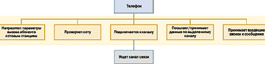 Сотовые телефоны в нашей системе — не самые интеллектуальные устройства. Их задача сводится, по сути дела, к непрерывному излучению радиосигналов: сигналов с передаваемыми и принимаемыми данными либо тестового сигнала, которым телефон проверяет канал связи: вышел ли он из зоны приема. Ну и конечно же, телефон служит пультом для ввода телефонных номеров других абонентов. Полный набор функций вы можете увидеть на рис. 4.