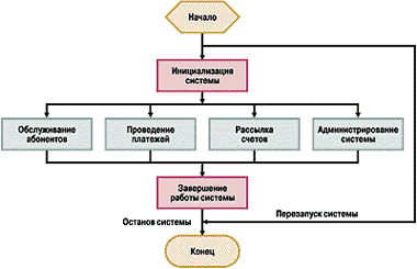 Осталось описать еще две подсистемы: финансовую и получения счетов. Первую используют для учета платежей за предоставляемые услуги, и она довольно тривиальна — система ищет объект для удаленного платежа, предоставляемый банком, и отдает через него команду на пересылку денег. Вторая подсистема опять-таки работает на пользователя. По его запросу формируется большой сводный счет, который либо пересылается на факс пользователя, либо распечатывается и отсылается письмом по обычной почте.