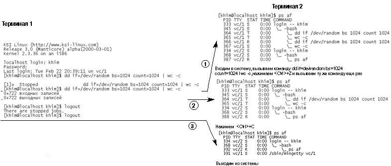 Рис. 2. Эксперимент с запуском и остановкой процессов