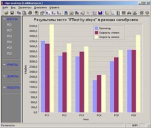Исключив сервер из рассмотрения дисковой системы, можно основное внимание уделить локализации дефектов и определению узких мест в рабочих станциях сети и активном сетевом оборудовании. Диагностика сервера и оценка влияния производительности дисковой системы сервера на общую производительность сети производится другими тестами. На рис. 5 показан пример результатов этого теста.