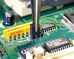 3. Установите на системной плате перемычки. Чтобы получить при замене процессора наилучшие характеристики, надо установить частоту шины системной платы равной 66 МГц. Кроме того, следует задать максимальное значение множителя частоты системной платы — обычно оно составляет 3,5Х. Хотя на некоторых системных платах и нанесена маркировка перемычек, иногда приходится обращаться к Руководству пользователя. Некоторые современные системные платы перемычек не имеют, и тогда параметры нового процессора задаются автоматически. Не надевайте крышку корпуса компьютера до тех пор, пока вы не убедитесь, что все работает должным образом. Запустите приложения и проверьте, корректно ли они функционируют. Если же при включении питания ПК ничего не произошло, то выключите его и выясните, правильно ли вставлен процессор. Если все же проблемы остались, обратитесь в службу технической поддержки.