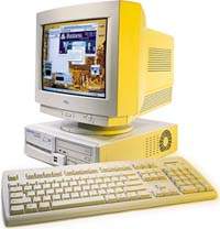 ClientPro Cf — это первый «дотысячедолларовый» ПК фирмы Micron. Из рассмотренных в статье он самый большой. Своим серо-белым корпусом он на первый взгляд напоминает обыкновенный настольный ПК. Система Micron включает в себя флоппи-дисковод, привод CD-ROM и все стандартные порты. Также есть по два порта USB на передней и задней сторонах корпуса. Подобно своим собратьям iPAQ и E-Vectra, ClientPro лишен каких-либо разъемов расширения и отсеков. При размерах 41Ё33Ё9,5 см он весит меньше 7 кг. К сожалению, ПК довольно дорог, поскольку оснащен системным блоком на базе процессора Celeron-433, 64-Мбайт ОЗУ и 4,3-Гбайт жестким диском, стоящими 849 долл. В цену включена предустановленная Windows 2000, но не входит монитор.