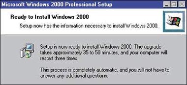 Однако проще всего будет возвратить машину в первоначальное состояние, если вы перед установкой Windows 2000 скопируете все разделы своего диска и удостоверитесь, что при необходимости сможете восстановить их на прежнем месте. После того как это будет сделано, вы готовы к модернизации. (Более подробную информацию о копировании диска и руководство по работе с программой установки Windows 2000 см. во врезке «Основы перехода на Windows 2000».)