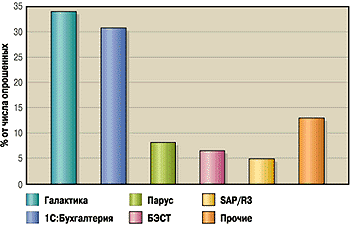 Если же говорить о системах управления предприятием, то здесь уже другая картина. Лидерство в этой категории принадлежит «Галактике». И отечественные системы, как мы видим, значительно более популярны, чем западные.