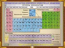 Один из основных разделов — «Периодическая система элементов» — представлен в виде всем знакомой таблицы. Если щелкнуть мышью по ячейке какого-либо элемента, то открывается окно с подробным описанием свойств последнего. К сожалению, здесь была замечена досадная ошибка: в ячейке с элементом «Золото» указан «Гафний» (хотя описание свойств элемента соответствует «Золоту»).