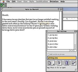 Лучший путь — исправление произвольно выбранного фрагмента текста, когда есть возможность выделять, форматировать и редактировать неверное выражение (даже если оно было набрано несколькими абзацами ранее), просто отдав устную команду компьютеру. Такая программа маркирует неправильное слово и предлагает варианты замены. Именно так работает ПО ViaVoice компании IBM.