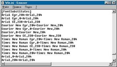 | Параметры подстановки шрифтов прописываются в системном реестре и в файле Win.ini |
