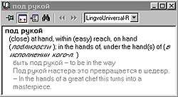 Процесс «внедрения» в статьи прост — достаточно дважды щелкнуть мышью на любом слове, как откроется окно с посвященной ему статьей. А поскольку таких статей в системе более миллиона и относятся они к семи различным предметным областям (общая лексика, экономика, политехника, наука, вычислительная техника, деловая лексика, нефтегазовая область), то весьма высока вероятность, что требуемый вариант перевода будет подобран. Но всегда хочется большего, особенно профессионалам, будь то переводчик или специалист узкого профиля. Здесь на помощь придет «открытость» Lingvo — для пополнения системы новыми словарными статьями и пользовательскими словарями имеется специальный инструментарий. Работать с ним не сложнее, чем создать документ в текстовом редакторе. Об этом подробно рассказывается в разделе «DSL compiler» подсистемы помощи и на Web-странице компании ABBYY по адресу http://www.lingvo.ru/dsl/index.htm.