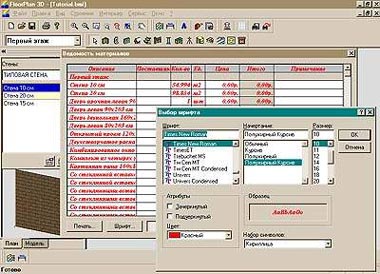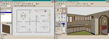 Модель создается в рабочей области экрана с помощью средств, выбранных из меню или панели инструментов. При этом все элементы (окна, двери, стены...) связаны с базой данных и вставляются просто мышью. Размещать предметы с высокой точностью помогает автоматическое определение размеров — заметьте, размеры приведены в знакомых метрах и сантиметрах в отличие от подобных программ, где господствуют неудобные для нас дюймы. FloorPlan 3D автоматически вычисляет и отображает значения площади каждой комнаты. Впрочем, это свойство можно и отключить.