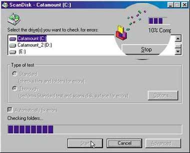 2. Подготовьтесь к модернизации. Хорошо было бы убедиться, что BIOS системной платы ПК отвечает современным требованиям, хотя это и не обязательно. Посетите раздел поддержки на Web-узле производителя вашего ноутбука. Убедитесь, что старый жесткий диск исправен (позднее вам нужно будет скопировать с него данные), запустив утилиты ScanDisk («Пуск? Программы?Стандартные?Служебные?Проверка диска» (Start? Programs?Accessories? System?Tools?ScanDisk)) и DiskDefragmenter («Пуск? Программы? Стандартные?Служебные?Дефрагментация диска» (Start? Programs? Accessories?System?Tools? Disk Defragmenter)). Наконец, проведите полное резервное копирование данных с жесткого диска. Если же у вас нет накопителя на магнитной ленте, то запишите на дискеты.
