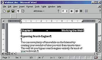 Время от времени требуется разделить строку текста таким образом, чтобы одна ее часть вплотную подходила к левой границе, а другая — к правой. Например, в заголовке необходимо разместить номер главы слева, а название раздела — справа. Таким же образом очень часто нужно разбить строку текста в верхнем и нижнем колонтитулах. Проблема заключается в том, что в справочных системах редакторов не рассказывается, как это можно сделать. Вот технология, которая исподходит как для Word 97, 2000, так и для WordPerfect 8, 9.