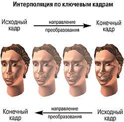 Столь долгожданная мимика теперь наконец может быть реализована благодаря интерполяции по ключевым кадрам (Keyframe Interpolation). В ее основе морфинг — процесс генерации необходимого количества промежуточных кадров с заданной степенью детализации.