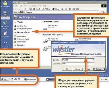 Улучшился и Проводник. Так, в режиме показа папок в качестве Web-страниц появились дополнительные возможности. Как и в случае Пусковой панели, средства обращения к часто используемым задачам и ссылкам, включая команды для создания и копирования папок, а также переименования и удаления файлов, теперь расположены более удобно. Все ссылки и команды контекстно зависимы, например в папке My Pictures (Мои картинки) есть кнопки масштабирования, вращения и слайд-шоу.